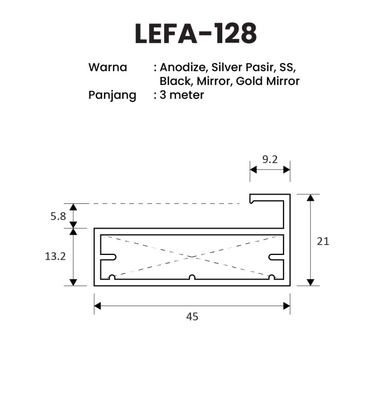 Anodize ,Beige ,Black Anodize ,Black Gold ,Black Mirror ,Blue ,Bronze ,Brown ,Brush Nickel ,Chrome ,Chrome Anodize ,Gold ,Gold Black ,Gold Doff ,Gold Mirror ,Gold Plated ,Hitam ,Mirror ,Putih ,Rose Gold ,Satin ,Silver Pasir ,SS ,WEP ,Yellow |